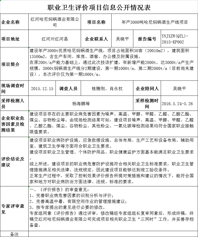 17-職業衛生(shēng)評價項目信息公開情況表-YNJXZW(QTL)-2015-KP002