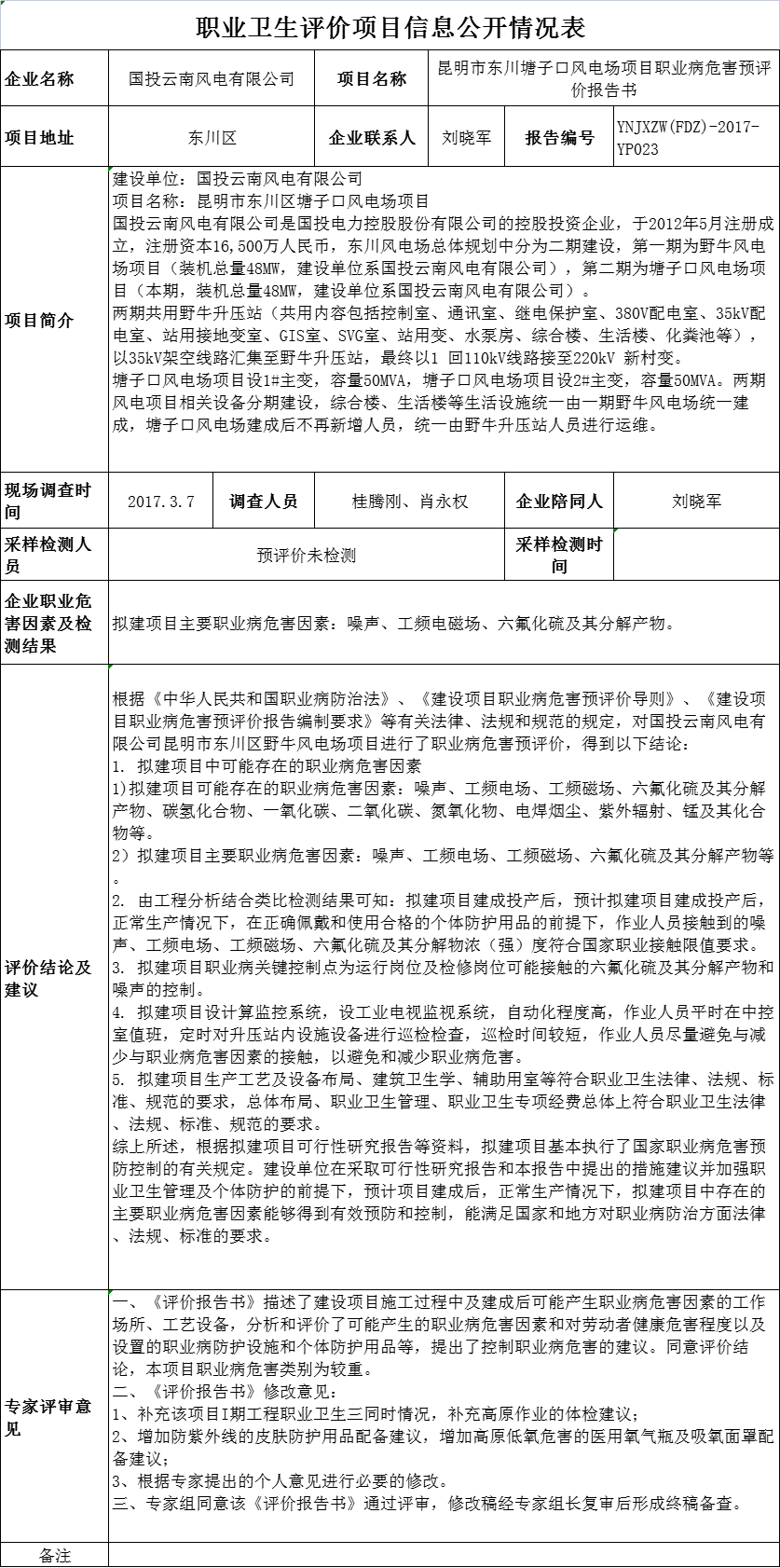17-職業衛生(shēng)評價項目信息公開情況表-YNJXZW(FDZ)-2017-YP023