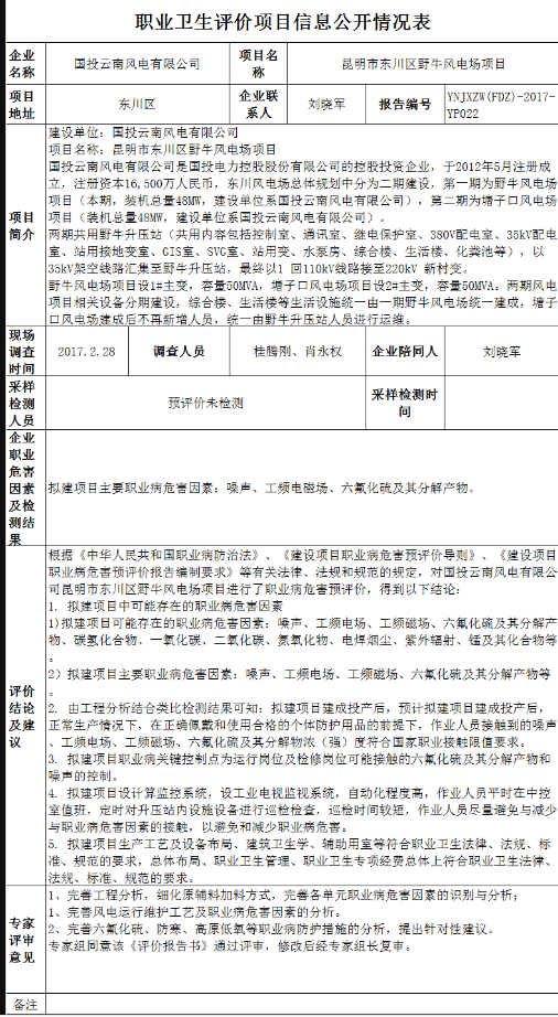 17-職業衛生(shēng)評價項目信息公開情況表-YNJXZW(FDZ)-2017-YP022