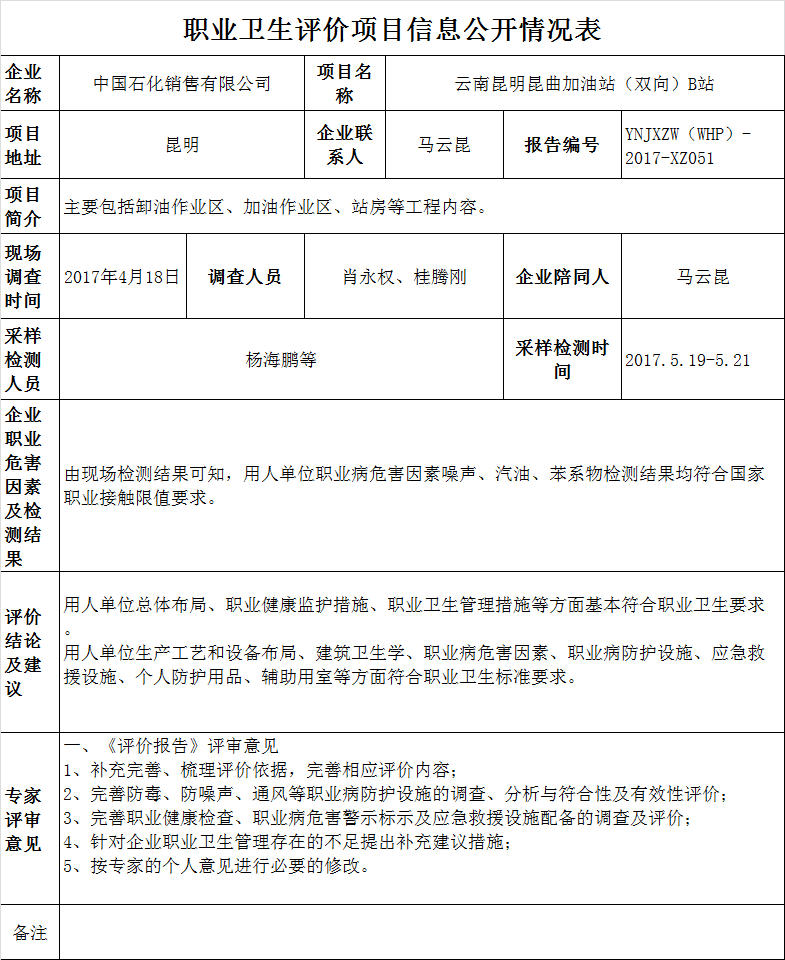 17-職業衛生(shēng)評價項目信息公開情況表YNJXZW(WHP)-2017-XZ051
