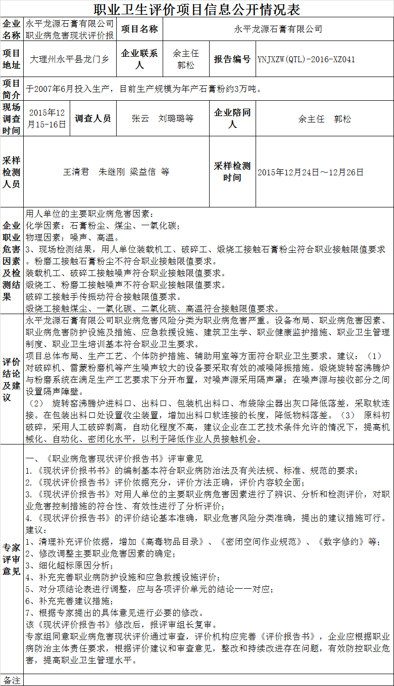 17-職業衛生(shēng)評價項目信息公開情況表-YNJXZW(QTL)-2016-XZ041