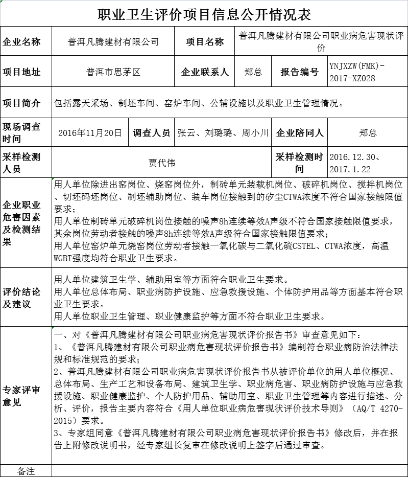 17-職業衛生(shēng)評價項目信息公開情況表-YNJXZW(FMK)-2017-XZ028