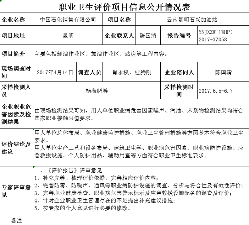 17-職業衛生(shēng)評價項目信息公開情況表-YNJXZW(WHP)-2017-XZ058