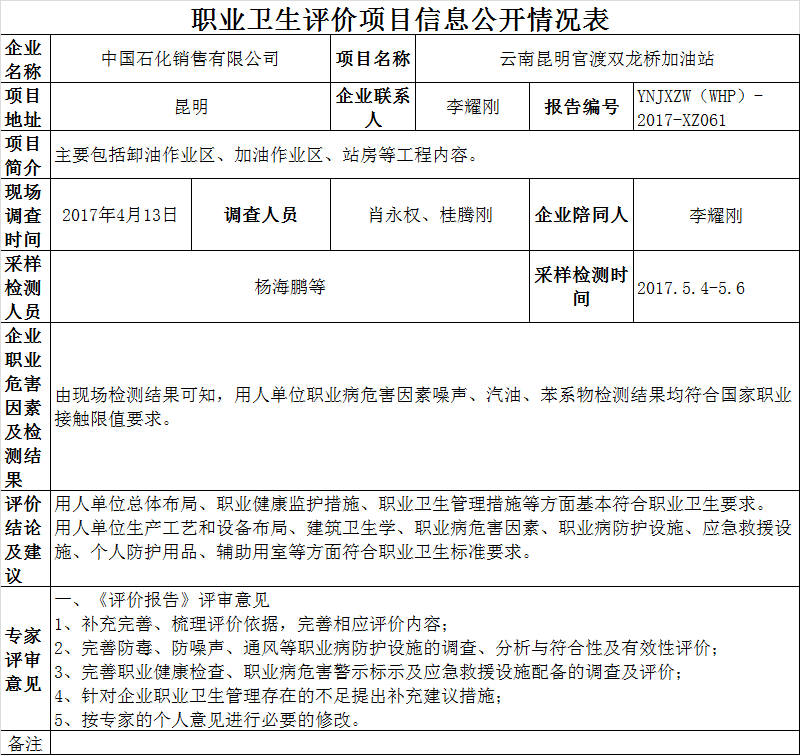 17-職業衛生(shēng)評價項目信息公開情況表YNJXZW(WHP)-2017-XZ061