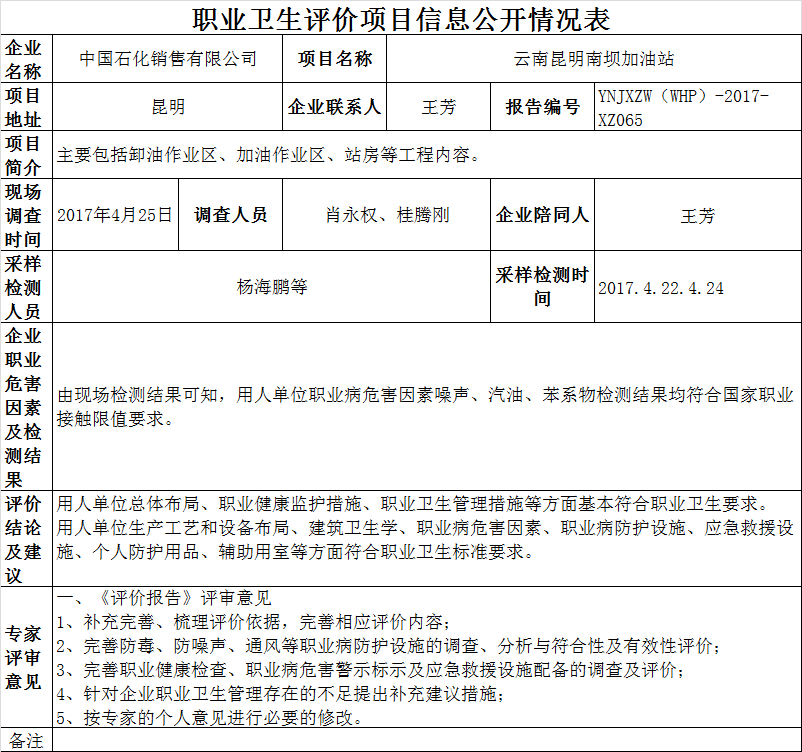 17-職業衛生(shēng)評價項目信息公開情況表YNJXZW(WHP)-2017-XZ065