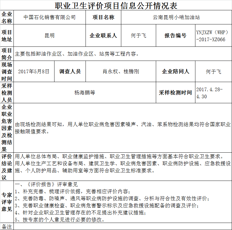 17-職業衛生(shēng)評價項目信息公開情況表YNJXZW(WHP)-2017-XZ066