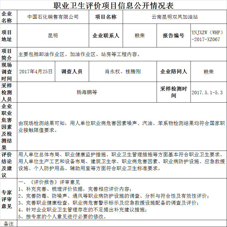 17-職業衛生(shēng)評價項目信息公開情況表YNJXZW(WHP)-2017-XZ067