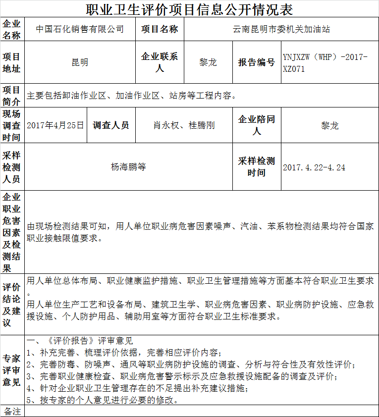 17-職業衛生(shēng)評價項目信息公開情況表YNJXZW(WHP)-2017-XZ071