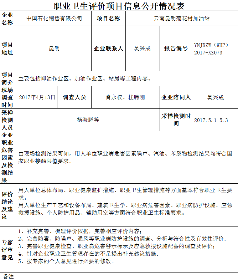 17-職業衛生(shēng)評價項目信息公開情況表YNJXZW(WHP)-2017-XZ073