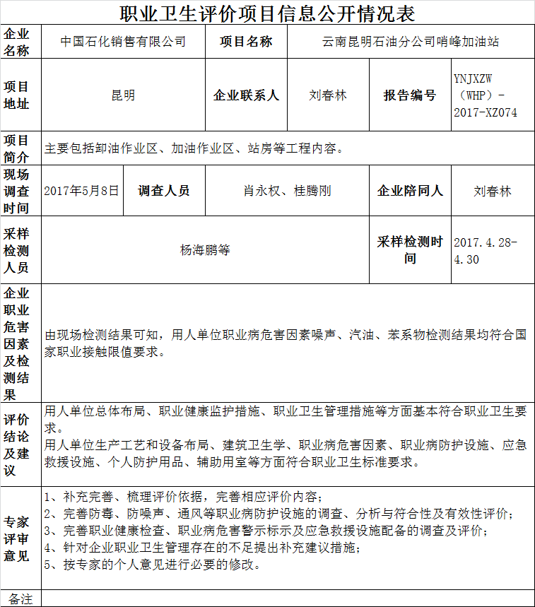 17-職業衛生(shēng)評價項目信息公開情況表YNJXZW(WHP)-2017-XZ074
