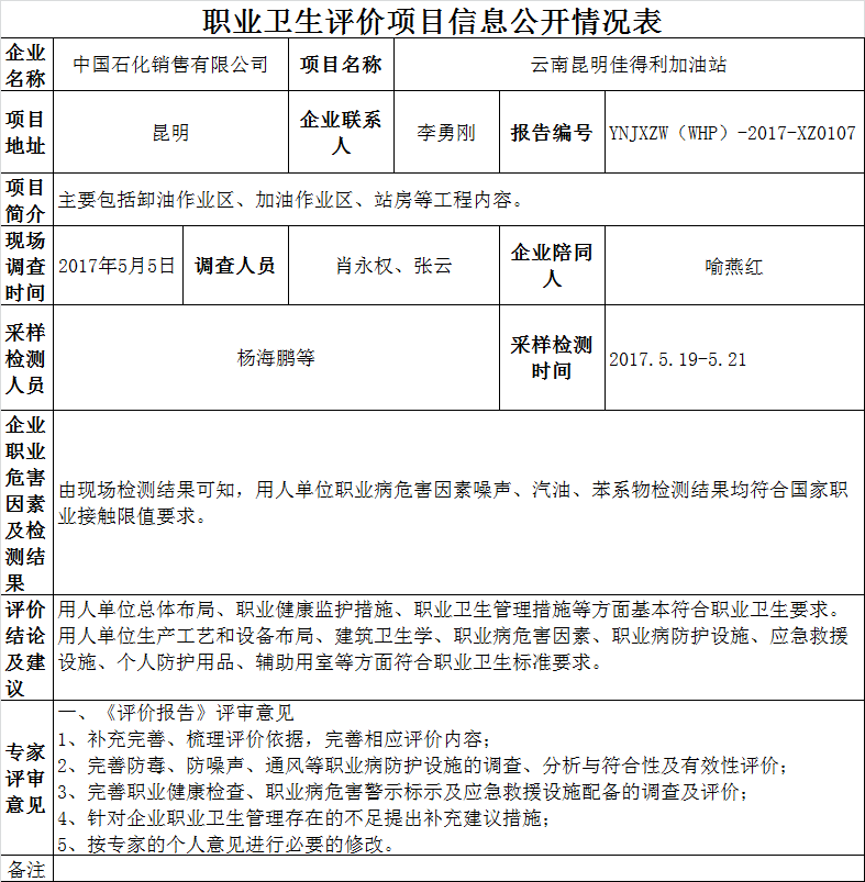 17-職業衛生(shēng)評價項目信息公開情況表YNJXZW(WHP)-2017-XZ0107