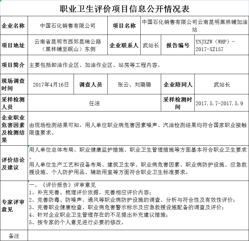 17-職業衛生(shēng)評價項目信息公開情況表-YNJXZW(WHP)-2017-XZ157