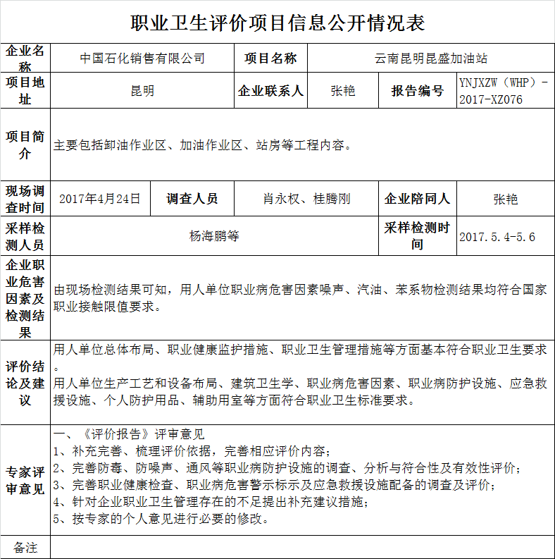17-職業衛生(shēng)評價項目信息公開情況表YNJXZW(WHP)-2017-XZ076