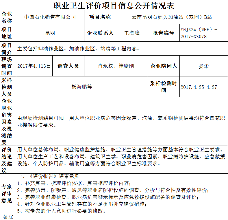 17-職業衛生(shēng)評價項目信息公開情況表YNJXZW(WHP)-2017-XZ078
