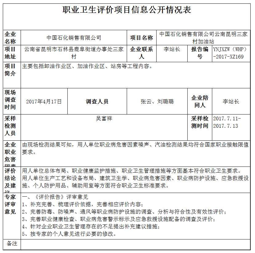17-職業衛生(shēng)評價項目信息公開情況表-YNJXZW(WHP)-2017-XZ169