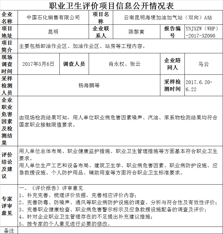17-職業衛生(shēng)評價項目信息公開情況表YNJXZW(WHP)-2017-XZ090