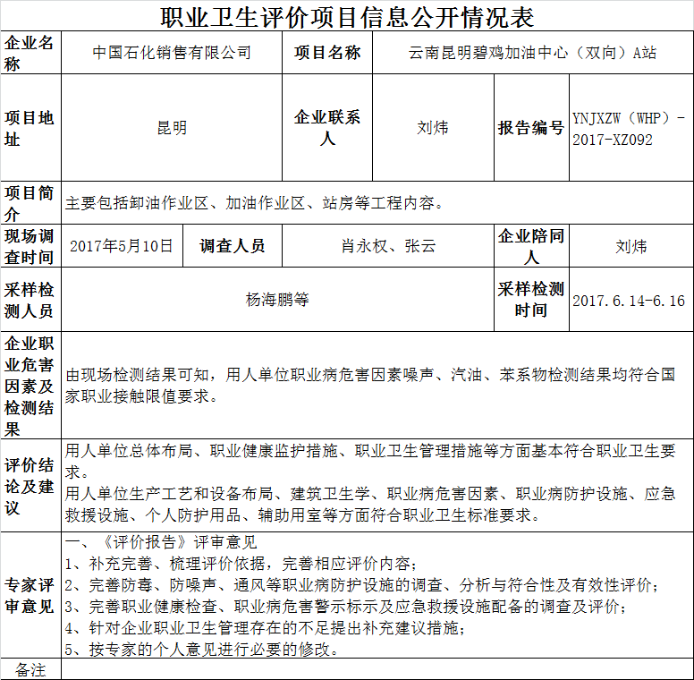 17-職業衛生(shēng)評價項目信息公開情況表YNJXZW(WHP)-2017-XZ092