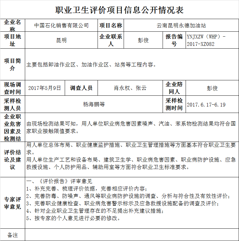17-職業衛生(shēng)評價項目信息公開情況表YNJXZW(WHP)-2017-XZ082