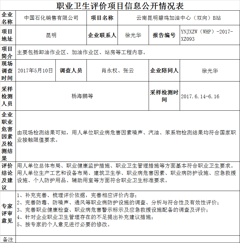 17-職業衛生(shēng)評價項目信息公開情況表YNJXZW(WHP)-2017-XZ093