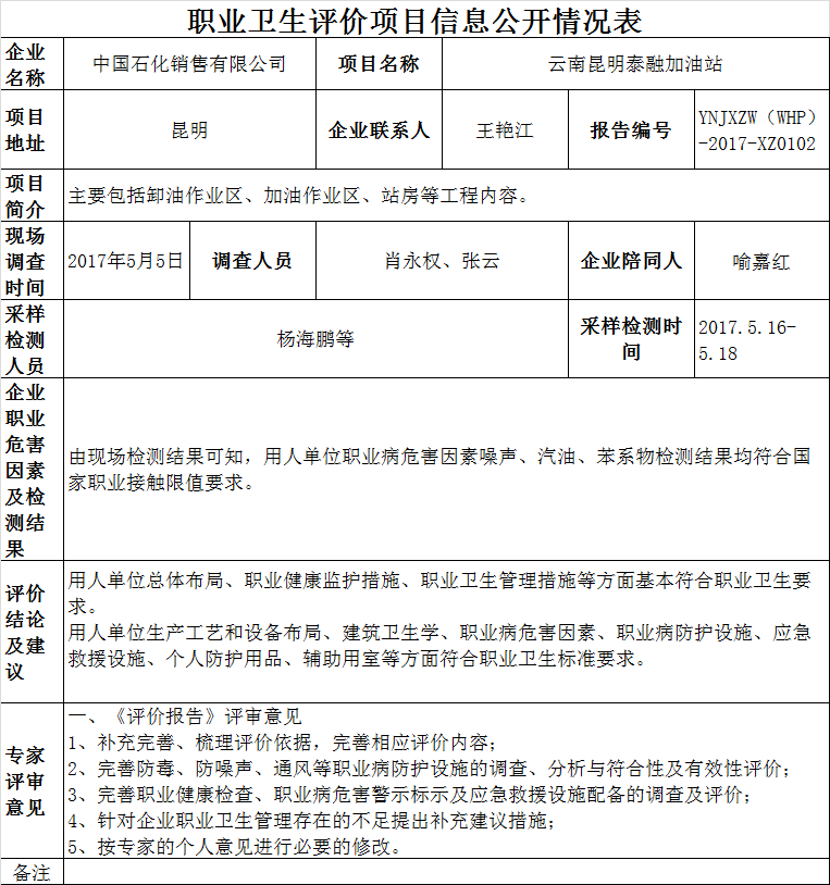 17-職業衛生(shēng)評價項目信息公開情況表YNJXZW(WHP)-2017-XZ0102
