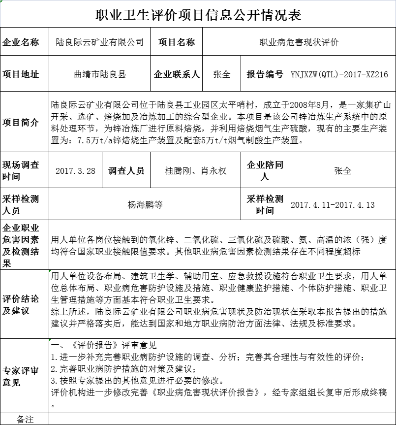 17-職業衛生(shēng)評價項目信息公開情況表-YNJXZW(QTL)-2017-XZ216