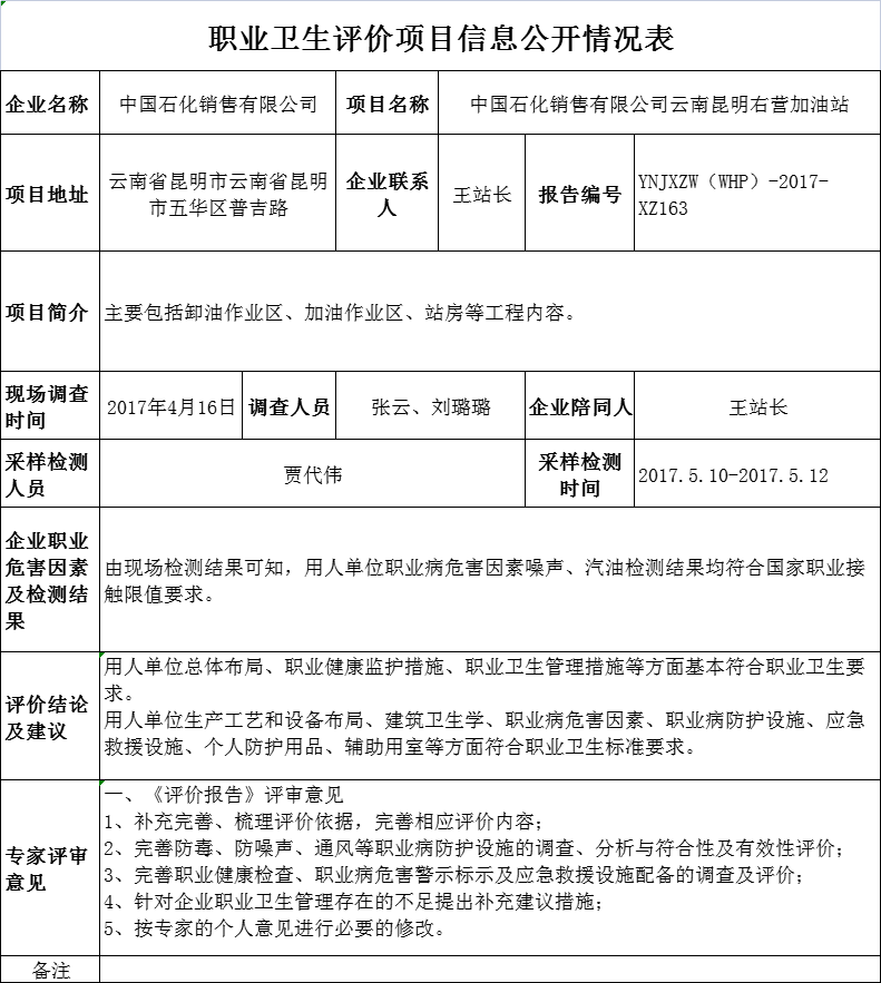 17-職業衛生(shēng)評價項目信息公開情況表-YNJXZW(WHP)-2017-XZ163