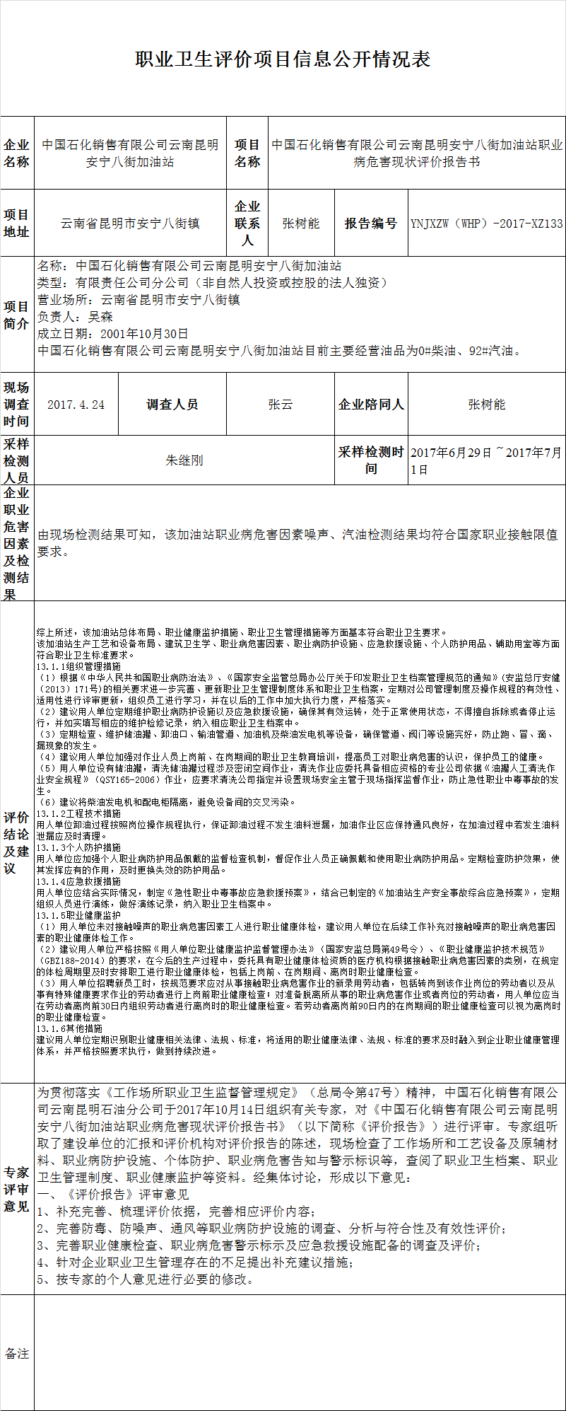 17-職業衛生(shēng)評價項目信息公開情況表YNJXZW(WHP)-2017-XZ133