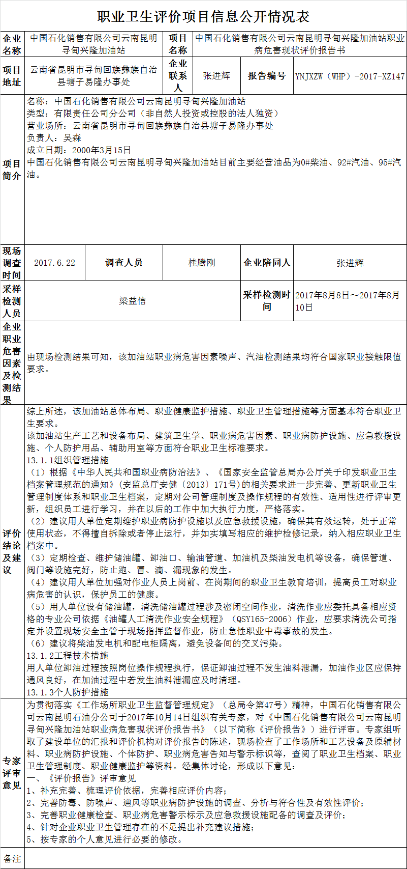 17-職業衛生(shēng)評價項目信息公開情況表YNJXZW(WHP)-2017-XZ147
