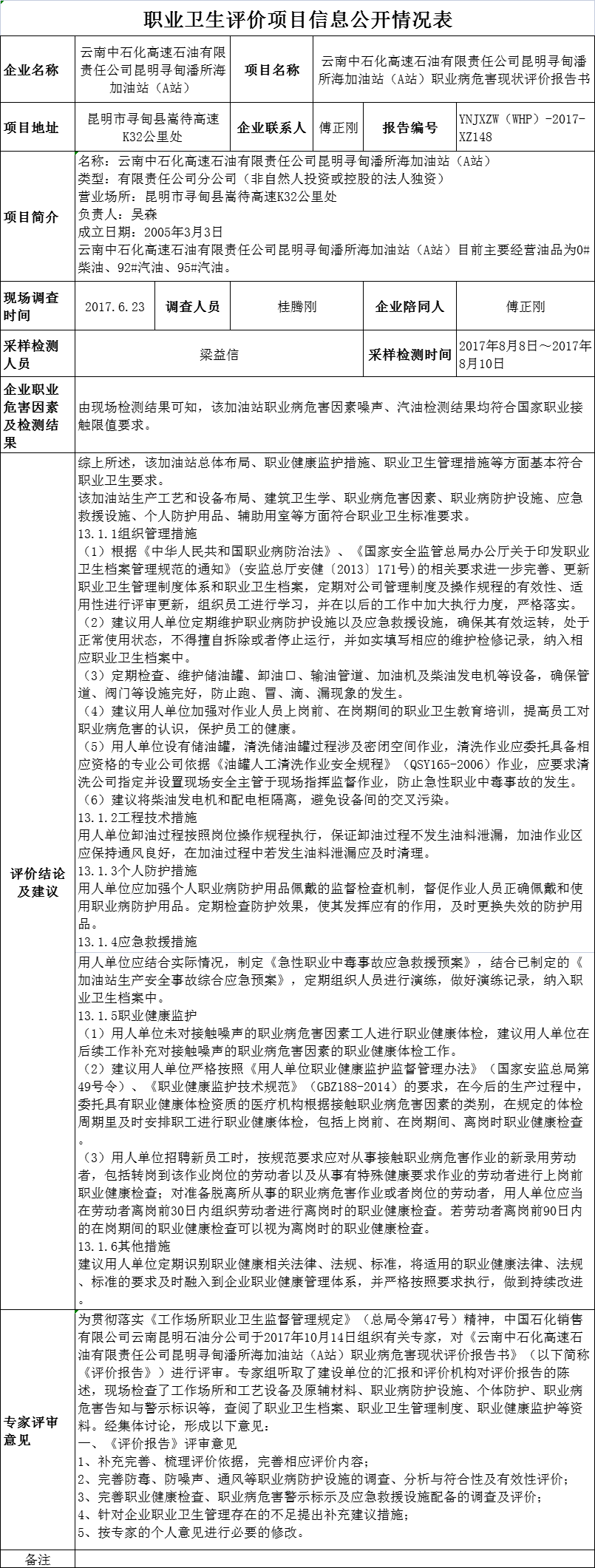 17-職業衛生(shēng)評價項目信息公開情況表-YNJXZW(WHP)-2017-XZ148