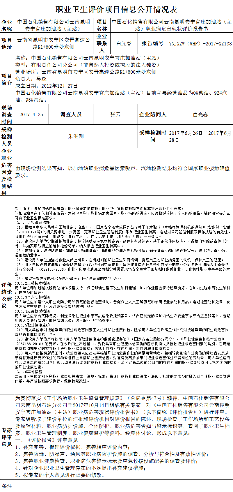 17-職業衛生(shēng)評價項目信息公開情況表YNJXZW(WHP)-2017-XZ138