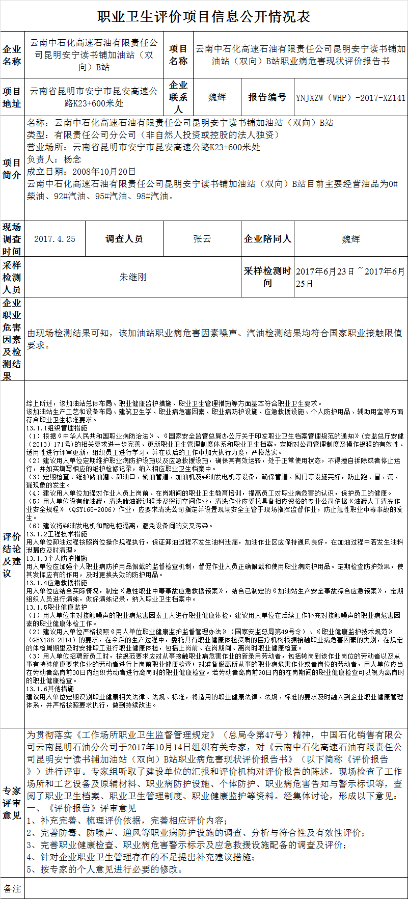 17-職業衛生(shēng)評價項目信息公開情況表YNJXZW(WHP)-2017-XZ141