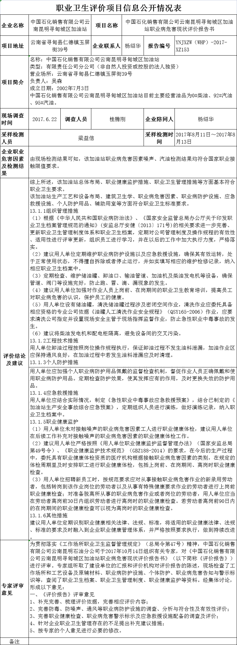 17-職業衛生(shēng)評價項目信息公開情況表-YNJXZW(WHP)-2017-XZ153