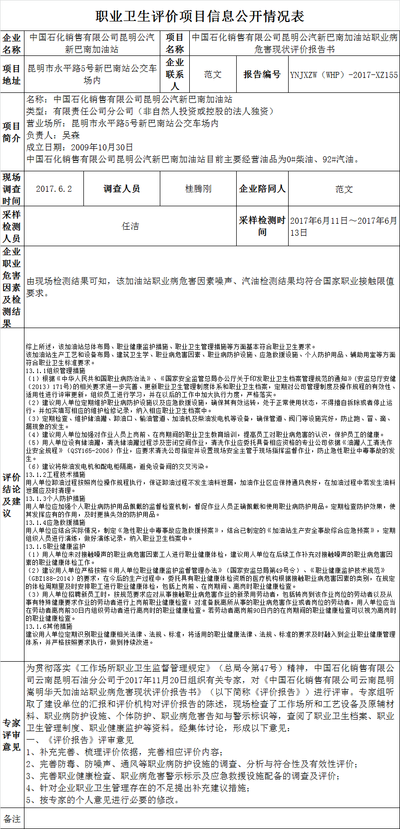 17-職業衛生(shēng)評價項目信息公開情況表YNJXZW(WHP)-2017-XZ155