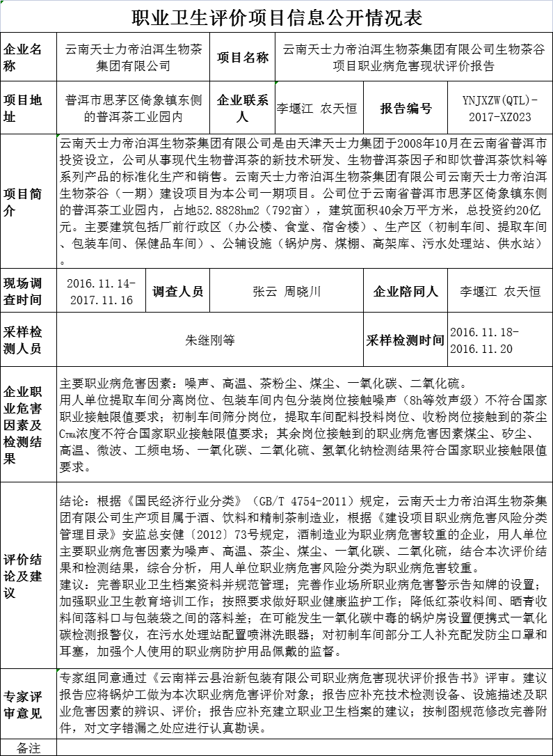 17-職業衛生(shēng)評價項目信息公開情況表-YNJXZW(QTL)-2017-XZ023