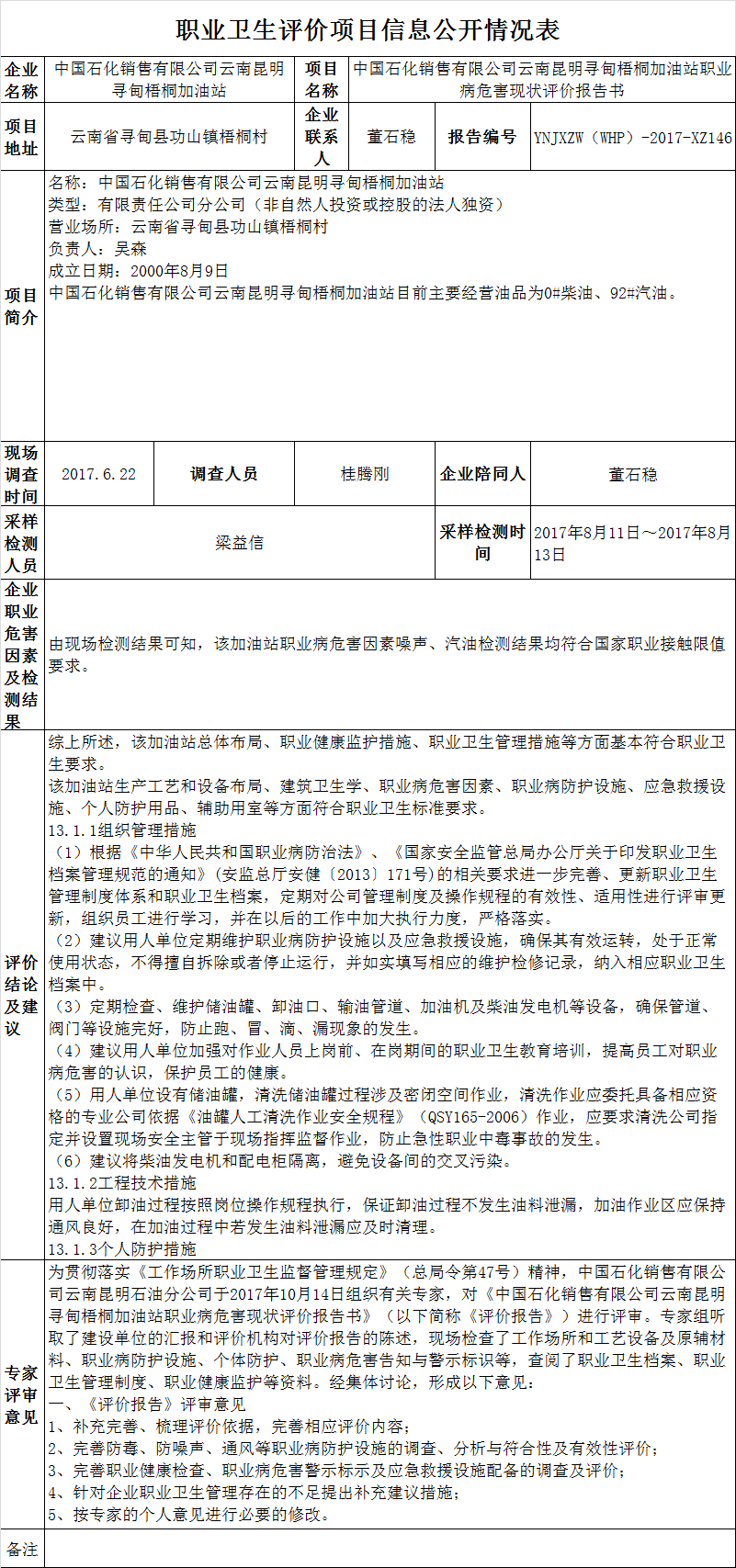17-職業衛生(shēng)評價項目信息公開情況表YNJXZW(WHP)-2017-XZ146
