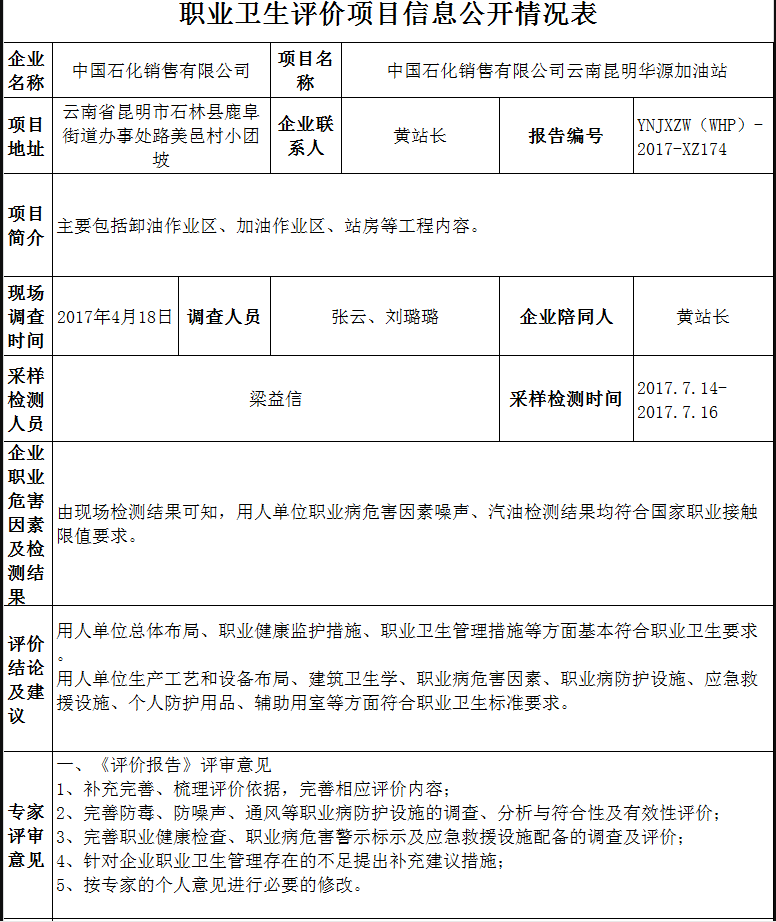 17-職業衛生(shēng)評價項目信息公開情況表-YNJXZW(WHP)-2017-XZ174