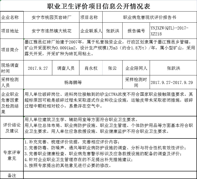 17-職業衛生(shēng)評價項目信息公開情況表-YNJXZW(QTL)-2017-XZ218