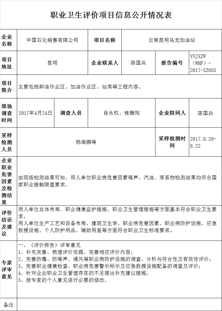17-職業衛生(shēng)評價項目信息公開情況表YNJXZW(WHP)-2017-XZ055
