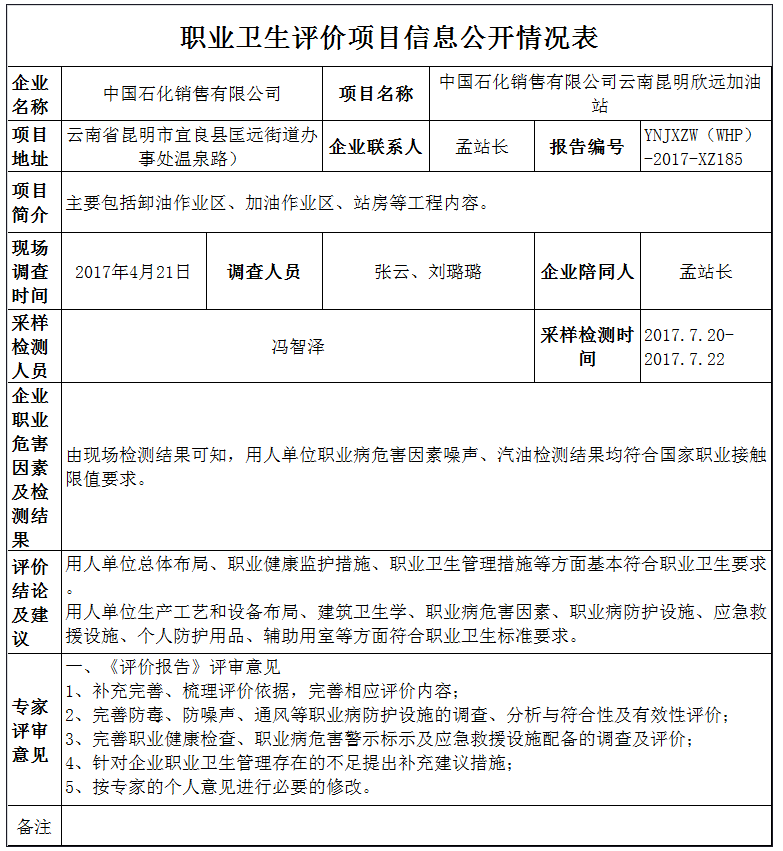 17-職業衛生(shēng)評價項目信息公開情況表-YNJXZW(WHP)-2017-XZ185