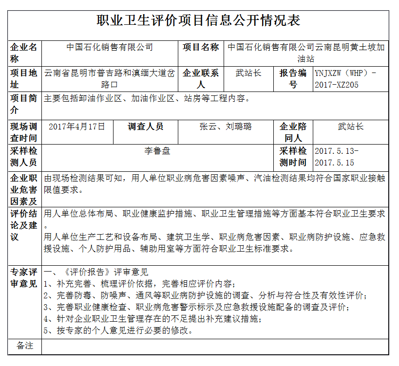 17-職業衛生(shēng)評價項目信息公開情況表-YNJXZW(WHP)-2017-XZ205