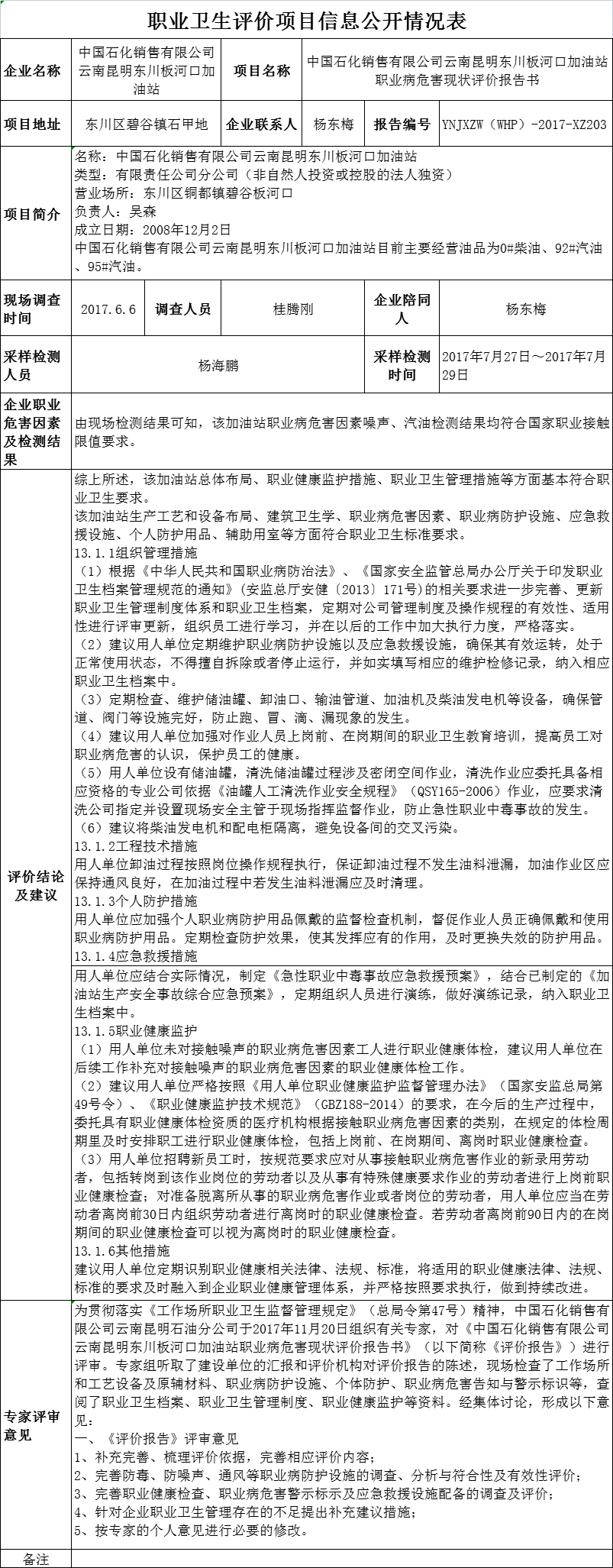 17-職業衛生(shēng)評價項目信息公開情況表-YNJXZW(WHP)-2017-XZ203
