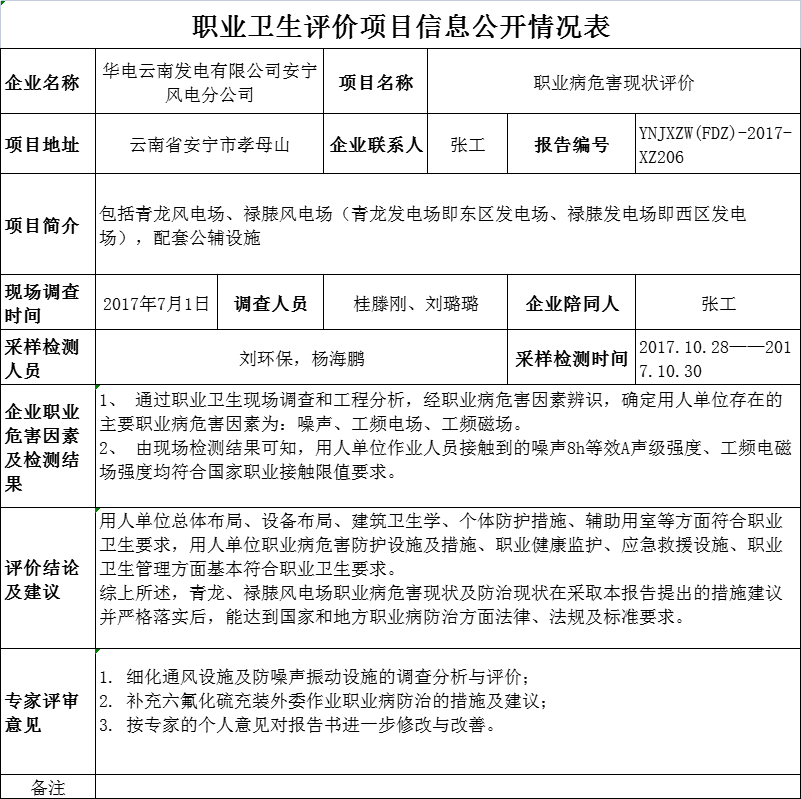 17-職業衛生(shēng)評價項目信息公開情況表-YNJXZW(FDZ)-2017-XZ206