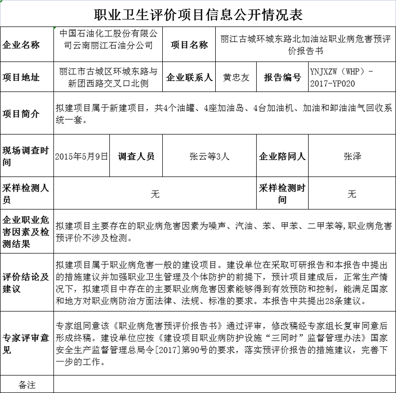 17-職業衛生(shēng)評價項目信息公開情況表-YNJXZW(WHP)-2017-YP020