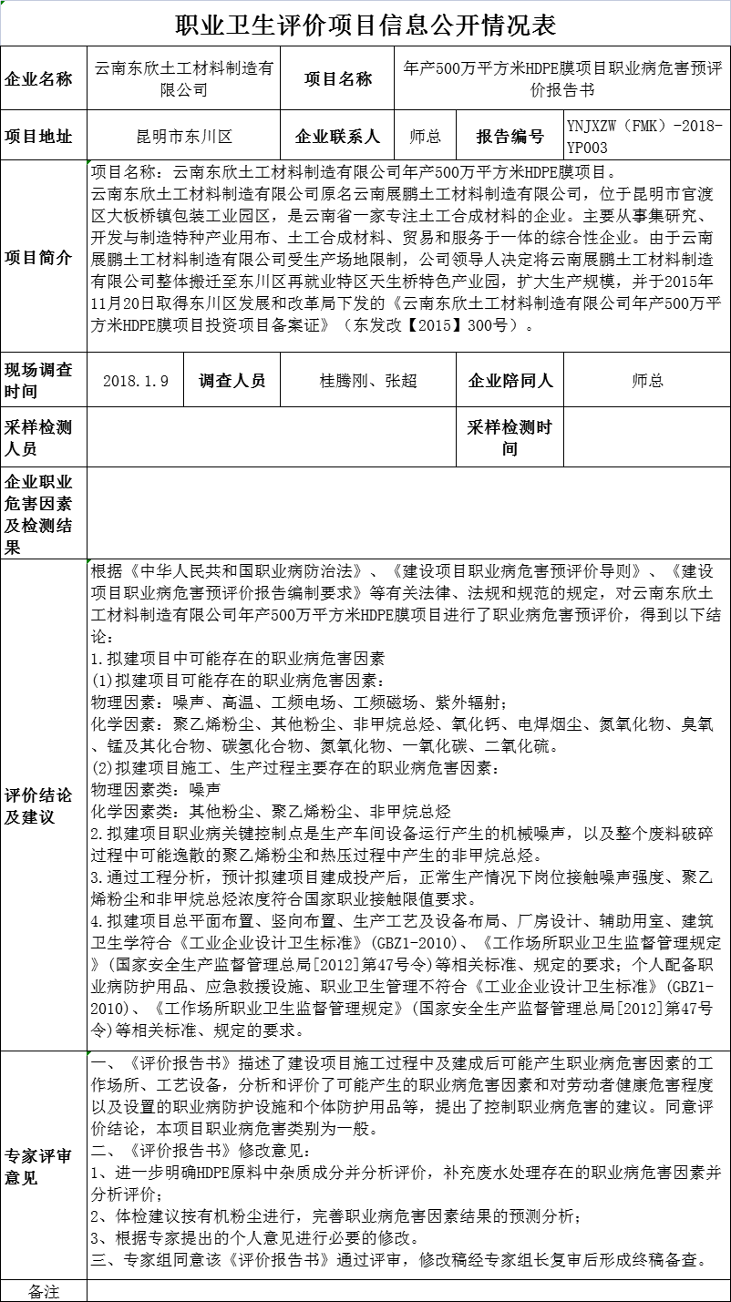 18-職業衛生(shēng)評價項目信息公開情況表-YNJXZW(FMK)-2018-YP003