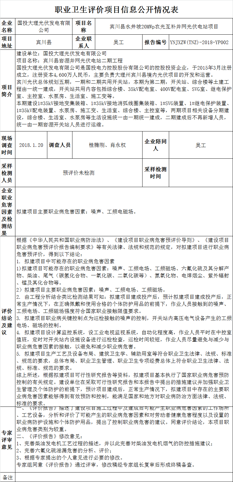 18-職業衛生(shēng)評價項目信息公開情況表-YNJXZW(TNZ)-2018-YP002