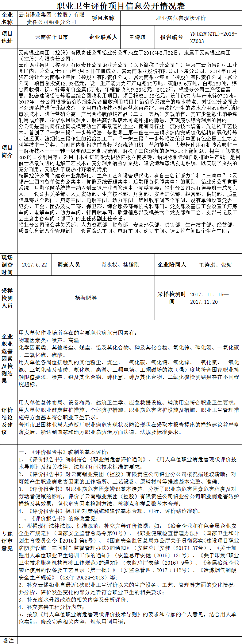 18-職業衛生(shēng)評價項目信息公開情況表YNJXZW(QTL)-2018-XZ003