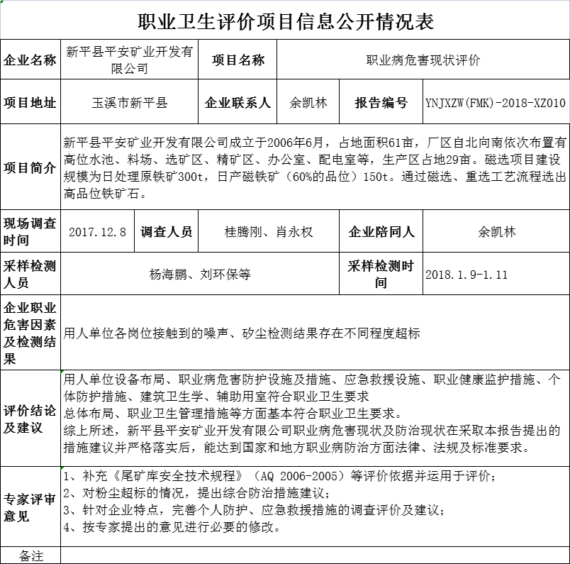 18-職業衛生(shēng)評價項目信息公開情況表-YNJXZW(FMK)-2018-XZ010