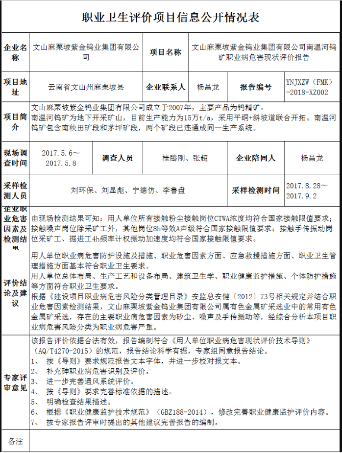 18-職業衛生(shēng)評價項目信息公開情況表-YNJXZW(FMK)-2018-XZ002