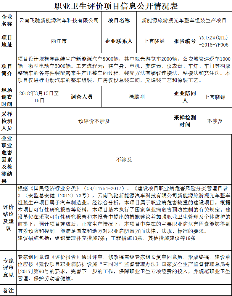18-職業衛生(shēng)評價項目信息公開情況表-YNJXZW(QTL)-2018-YP006