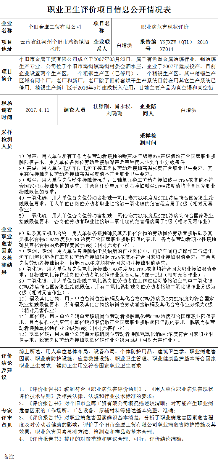 18-職業衛生(shēng)評價項目信息公開情況表YNJXZW(QTL)-2018-XZ014